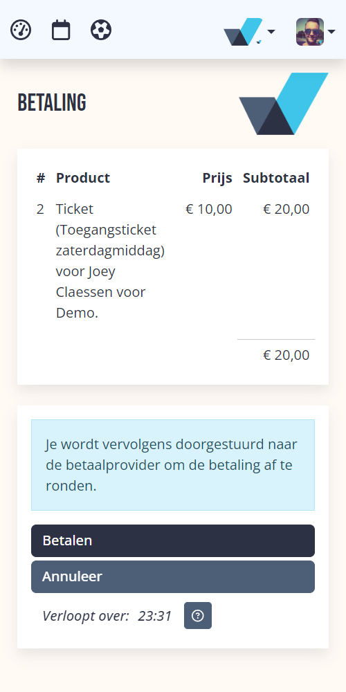 Bij iedere rol kan een ticketontwerp ingesteld worden welke door jullie zelf opgemaakt kan worden. De deelnemer kan dit ticket vervolgens digitaal tonen of printen.